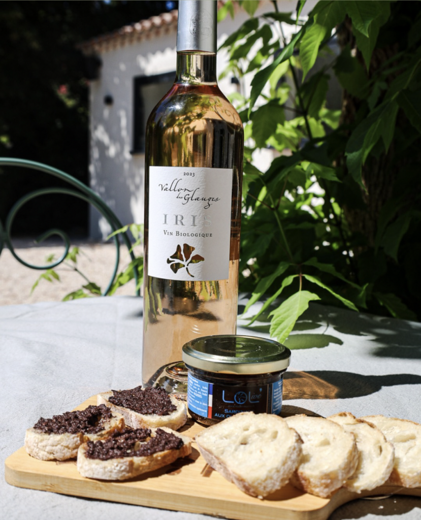 - Un verre de vin bio âIRISâ du Vallon des Glauges, Ă©lĂ©gant et fruitĂ©, produit tout prĂšs dâici đ
